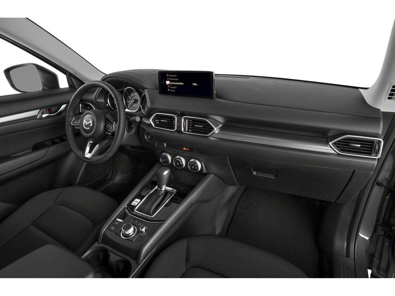 Inside, the CX-5 offers a spacious and well-appointed cabin with premium cloth seating, a user-friendly infotainment system, and a wealth of advanced safety features. Enjoy seamless smartphone integration with Apple CarPlay and Android Auto, as well as convenient steering wheel-mounted controls.
