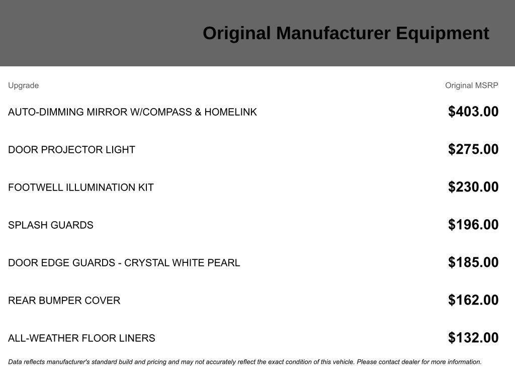 - Tires: 225/55R18 98H All-Season
